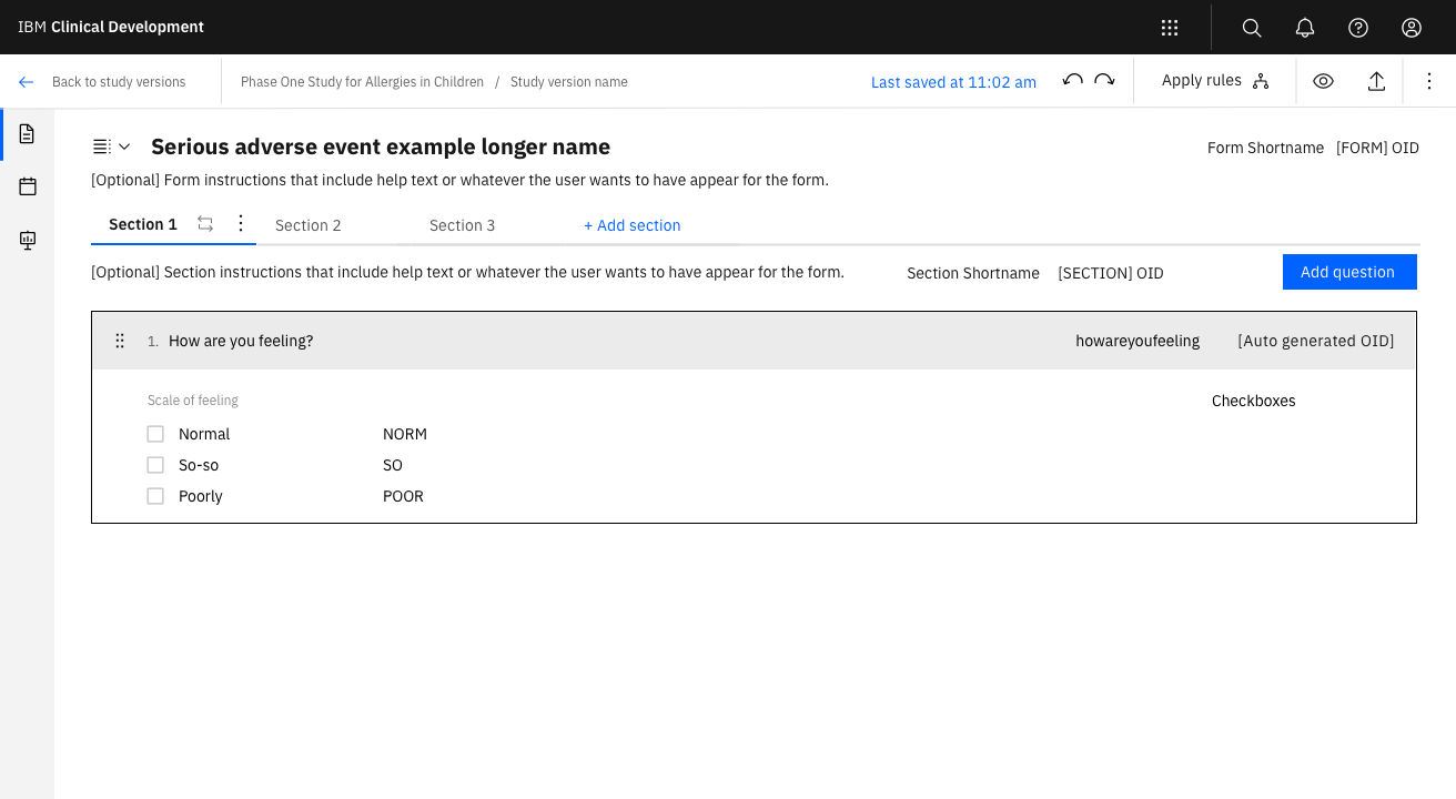 Form building references the process of building the means of data collection for a study. When a trial is being conducted, each site is given a set of forms with data points to record. Forms are organized into events and filled out based on a schedule of events set by the protocol. Building out the schedule of events and anticipating data collection challenges are the Study Designer’s main focus and is critical to the success of a study.