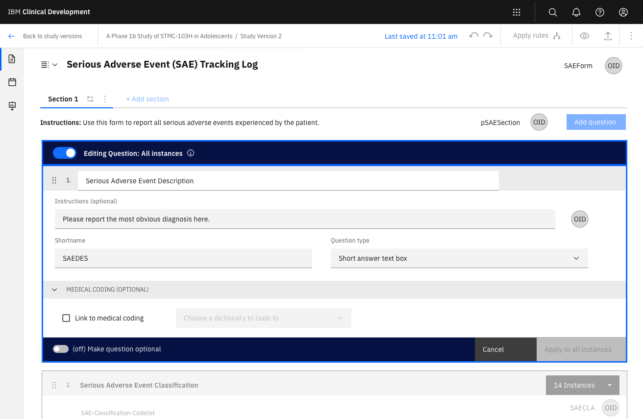 - Editing reuable data collection elements introduced the complexity of allowing Study Designers to decide how vastly their edits could be applied. Combined with the strict definitions of each element, Study Designers could easily get lost when trying to determine what element should be edited and the impact of those changes.